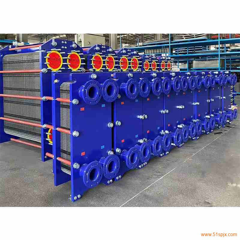 板式换热器主要由传热板片、密封胶垫、压紧装置等组成。板式换热器的结构及换热原理决定了其具有结构紧凑、占地面积小、传热系数高、操作灵活性大、应用范围广、热损失小、安装和清洗方便等特点。两种介质的平均温差可以小至1℃,热回收效率可达到99%以上。在相同压力损失情况下,板式换热器的传热系数是列管式换热器的3~5倍,占地面积为其的1/3,金属耗量只有其的2/3.因此板式换热器是一种高效、节能、节约材料、节约投资的先进换热设备。目前已广泛用于化工、石化、食品、机械、集中供热、冶金、动力、船舶、造纸、纺织、医药、核工业和海水淡化及热电联产等工业领域,可满足各类冷却、加热、冷凝、浓缩、消毒和余热回收等工艺的要求,在换热器领域已成为一种极有竞争能力的品种,甚至在某些工业领域已取代了传统的管壳式换热器。随着它的发展,应用领域将越来越广。