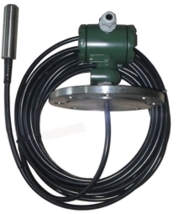 投入式液位计的核心元件采用高分子干式陶瓷电容传感器,传感器投入被测液体中,液位压力(P=ρgh)作用于传感器表面膜片,膜片产生弹性位移。利用公式:C=∑S/d ,∑和S是个固定值,当有液体压力作用于传感器膜片时,膜片之间的距离d发生变化,那么衬底电极与膜片电极之间的电容值C也就随液位变化而变化。大气通过液位变送器内的空气导管与探测头的内部相通。电容的变化值经激光微调电路放大输出1000~4000mV电压信号转换成4~20mA电流信号。