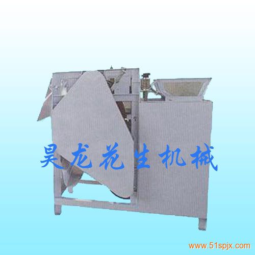 花生米湿法脱皮机是用来脱花生米红衣和杏仁的高效理想设备。主要用于油炸花生米、花生奶(乳)、花生蛋白粉、杏仁露生产前的脱皮。工作原理:将浸泡的原料倒入料斗、经震动使原料进入由三个动力辊固定的旋转胶轮,通过导条、进料轮的作用,由刀架上的刀片将原料外皮切口,然后出料轮将脱皮后的米、仁、豆压入出料斗,并在出料斗排出,外皮经甩皮轮甩出。