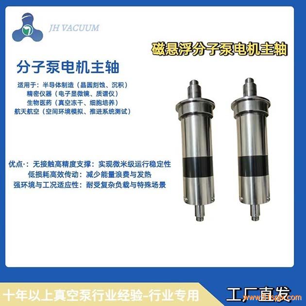 分子泵电机主轴 适用于:半导体制造(晶圆刻蚀、沉积)精密仪器(电子显微镜、质谱仪)生物医药(真空冻干、细胞培养)航天航空(空间环境模拟、推进系统测试) 优点·:无接触高精度支撑:实现微米级运行稳定性低损耗高效传动:减少能量浪费与发热强环境与工况适应性:耐受复杂负载与特殊场景