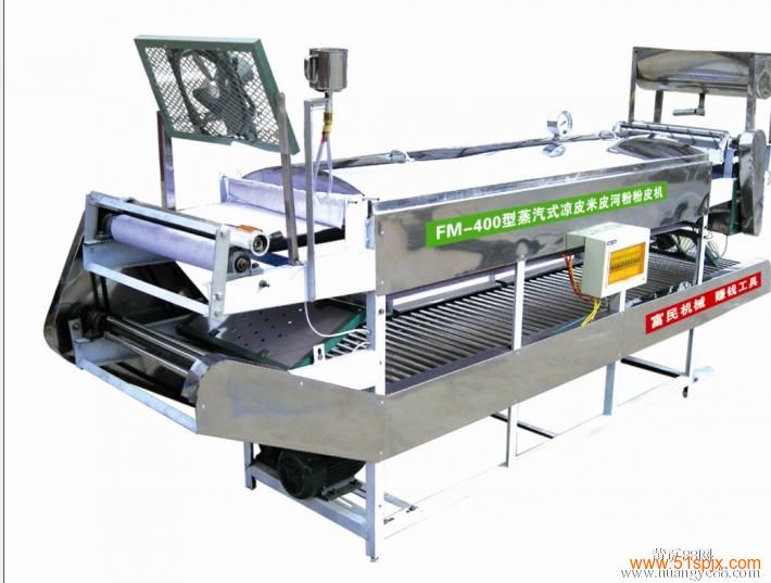 全自动凉皮机是我厂技术人员综合传统的凉皮机优、缺点研制的最新一代面食设备,是同类产品的佼佼者。与传统机型相比,该机具有以下优点:1、主轴选用特种钢材,并经严格的热处理,使其寿命大大延长。2、主轴加粗、加长,并加大电机功率,使产量大大提高。3、出口处增加铝合金圆盘,使您在使用时消除热水溅身或洒落地面的顾虑。4、废除原来的普通轴承,采用特种结构轴承,进口加热原件,虽然增加了成本,但提高了设备的使用性能,消除了噪音,延长了使用寿命。5、加热部件采用国际刚面世的最新材料和不锈钢,可常用不坏并加热快,解决了冬天做凉皮难的问题,比其它机型每小时可节省1度电。6、设备上增加了开合工作台,使用更加方便,避免了客户自备案板的麻烦。7、一改其它机型靠调压器和经验调温的笨方法,采用仪表恒温控制,使工艺变的简单化,人人均可操作。8、仪表盘与工作台安装在同一方位,一切参数醒目直观,方便操作。9、主要部件采用铝合金和不锈钢,符合国家食品卫生标准。美观耐用。10、使用本机洗面和不洗面均可制作,厚薄可调,不需拆机清理,靠仪表控制操作,无需用刷抹油。能制作凉皮、米皮、擀面皮、银丝面等产品。生产时只要将面水倒入料斗内,出机即为熟制品。并通过调整工艺和温度,可使面皮表面产生起泡(膨化)、起花纹、表面光亮平整等不同效果,可根据各地流行口味自由选择。