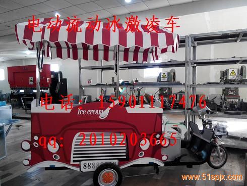 机器的造型别致、搭配简约、时尚的遮阳棚,冰淇淋的造型也是通过压花机压出来的,没有一点技术含量,只要轻轻一压就可以让冰激凌成型,花型也比较好看,流动冰激凌车机器使用电瓶供电内置优质电器元件, 多功能冰激凌车一次充电可以使用一天的,您就可以放心使用。无电冰激凌车及电动流动冰激凌车更多的详情请您来电咨询北京冰激凌车。