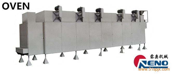 该烤箱的结构和原理优势:1.全自动流程,最大限度的节省劳动力人工。2.占地面积少。 3. 烘干效果好。 4. 食品卫生安全有保障。 5. 操作简单方便,整条生产线的操作只需要一个控制柜即可。