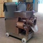 [摘要]带骨切丁机切块机TJ-300A适合将带软骨的禽类一次性切成条状、两次切成块(丁)状,如:鸟类、鸽子、鸡、鸭等。此机特殊设计,装有正反开关,方便肉...