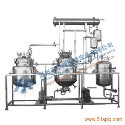 热回流提取浓缩机组可整机组套,实现负压、常压、正压等多种提取要求,采用水、乙醇、甲醇、丙醇等提取和有机溶剂的回收与浓缩。