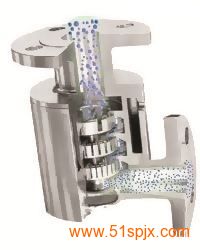 第二级由转定子组成。分散头的设计也很好的满足不同粘度的物质以及颗粒粒径的需要。在线式的定子和转子(乳化头)和批次式机器的工作头设计的不同主要是因为在对输送性的要求方面,特别要引起注意的是:在粗精度、中等精度、细精度和其他一些工作头类型之间的区别不光是指定转子齿的排列,还有一个很重要的区别是不同工作头的几何学征不一样。狭槽宽度以及其他几何学特征都能改变定子和转子工作头的不同功能。