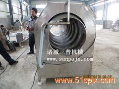 大枣清洗机 滚桶清洗机 新疆大枣清洗机不但能清洗大枣,还适用于茎类腌渍菜、水果类的清洗,在滚桶内通过毛刷的清洗,上部高压喷淋,通过螺旋控制出料时间,物料得到彻底的清洗,本机喷淋水前端采用循环水,后端为自来水,使用能源得到节约。