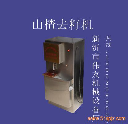 本机主要是为山楂等果品去籽而设计加工的专用设备。它采用单刀位送料,只需一人将山楂轮流放在固定的位置后即可触控法工作方式去籽,具有操作方便、安全、省时、省力、效率高等特点,从而不用再担心人工式、脚踏式、轮盘式等所有的效率低下、人工劳累、手脚酸痛、不安全等问题。本设备为气动型。微噪音。电压:220伏,重量:50公斤,外观尺寸:550*550*980(mm),去籽率:达到98%以上,破损率:2%以下,加工效率:40-50个/分钟左右。山楂大小不受限制。且加工时山楂不破损,不用做任何处理,一次性完成去籽入筐作业。适用范围:山楂、大枣、海红果等。是你加工糖葫芦和罐头的最佳设备。更多产品请详询 15952298800
