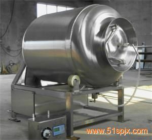 真空滚揉机是在真空状态下,利用物理冲击的原理,让肉在滚筒内上下翻动,相互撞击、摔打、达到按摩、腌渍的作用,可以使肉均匀的吸收腌渍,提高肉的结着力及产品的弹性;本机具有肺呼吸功能,让产品在滚筒内做膨胀、缩小的往复运动,改善了肉组织的结构,提高了切面效果,增加了出品率。可以增强保水性,改善产品的内部结构。 新一代的全自动真空滚揉机除具有真空滚揉机的特点外,还可以选配电脑控制变频技术的功能。是机器使用更安全,更方便,更加节能高效。整机采用不锈钢制造,结构紧凑,滚筒两端均采用旋压式封帽结构,最大的增加滚筒内的摔打空间,使滚揉产品的效果均匀,噪音小,性能可靠,操作简便,使用效率更高。