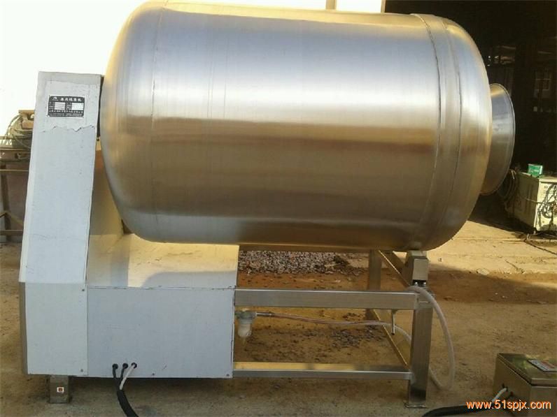 真空滚揉机是用于肉类制品的腌制和原料在真空状态下混合的专用设备,通过真空作用可以将块状肉的纤维组织拉张疏松,使常压腌制变成为负压腌制,通过转动摔打,使静态腌制为动态腌制,在恒定的温度条件下,使自然腌制变为强化腌制,提高了工作效率。